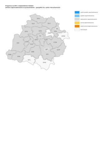 Prognoza na 2017, województwo łódzkie Zmiana zapotrzebowania na pracowników - specjaliści ds. rynku nieruchomości szybki spadek zapotrzebowania spadek zapotrzebowania EKU stały poziom zapotrzebowania wzrost zapotrzebowania ELC ELE szybki wzrost zapotrzebowania ES EZG EPD EBR EL EPA ESI brak danych ESK ERW ELW EZD ETM ELA EP EBE EPI EWE EWI EPJ ERA EOP