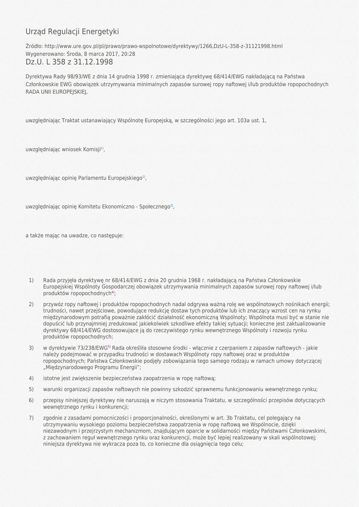 Urząd Regulacji Energetyki Dz.U. L 358 z 31.12.1998