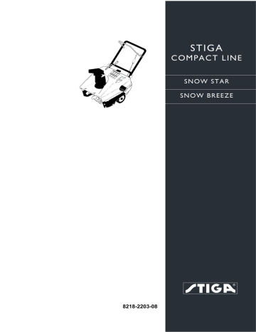 STIGA COMPACT LINE SNOW STAR SNOW BREEZE 8218-2203-08 6 18 19 21 20 22 PL POLSKI 1 SYMBOLE Na maszynie znajdują się następujące symbole. Ich zadaniem jest przypominanie o zachowaniu ostrożności i uwagi podczas jej używania. Znaczenie symboli: Ostrzeżenie. Przed użyciem maszyny należy przeczytać instrukcję obsługi. Niebezpieczeństwo – wirująca śruba śnieżna. Niebezpieczeństwo – wirujący wentylator. Nie zbliżać rąk do wyrzutnika. Nie zbliżać dłoni ani stóp do obracających się części. Trzymać osoby trzecie z bezpiecznej odległości od maszyny. Nigdy nie należy kierować wyrzutnika w stronę osób trzecich. Przed przystąpieniem do czyszczenia, konserwacji i serwisowania maszyny należy wyłączyć silnik i zdjąć kabel świecy zapłonowej. Ryzyko oparzeń. Należy stosować ochraniacze słuchu. 2 INSTRUKCJA BEZPIECZEŃSTWA 2.1 INFORMACJE OGÓLNE • Należy dokładnie przeczytać niniejszą instrukcję i zapoznać się z elementami sterowania oraz prawidłowym użytkowaniem maszyny. • Nigdy nie należy pozwalać na używanie maszyny dzieciom ani nikomu, kto nie zapoznał się z instrukcją użytkowania odśnieżarki. Przepisy lokalne mogą określać ograniczenia dotyczące wieku kierowcy. • Nigdy nie należy używać maszyny, jeśli w pobliżu znajdują się zwierzęta lub osoby, szczególnie dzieci. • Należy pamiętać, że za wypadki, które mogą przydarzyć się ludziom lub ich mieniu, odpowiada kierowca. • Należy uważać, aby nie potknąć się i nie upaść, szczególnie podczas cofania. • Nigdy nie należy używać odśnieżarki znajdując się pod wpływem alkoholu lub leków oraz będąc zmęczonym czy chorym. 2.2 PRZYGOTOWANIA • Sprawdzić teren, który będzie odśnieżany i usunąć wszystkie ruchome i obce przedmioty. • Przed uruchomieniem silnika należy wyłączyć wszystkie elementy sterowania. • Nigdy nie należy używać odśnieżarki bez odpowiedniej odzieży ochronnej. Należy nosić obuwie, które poprawia przyczepność na śliskiej powierzchni. • Ostrzeżenie – benzyna jest wysoce łatwopalna. A. Zawsze należy przechowywać benzynę w zbiornikach, które zostały specjalnie do tego przystosowane. B. Paliwo należy uzupełniać wyłącznie na zewnątrz, a podczas uzupełniania nigdy nie należy palić. C. Paliwo należy uzupełnić przed uruchomieniem silnika. Nigdy nie należy wyjmować korka wlewu lub uzupełniać paliwa podczas pracy silnika lub kiedy silnik jest jeszcze ciepły. D. Mocno zakręcić korek wlewu paliwa i wytrzeć ewentualnie rozlaną benzynę. • Wyregulować wysokość śruby śnieżnej, upewniając się, że znajduje się nad żwirową powierzchnią. • Nigdy, w żadnym wypadku, nie należy przeprowadzać regulacji podczas pracy silnika (chyba, że instrukcja nakazuje co innego). • Przed rozpoczęciem używania odśnieżarki należy zaczekać, aż maszyna dostosuje się do temperatury zewnętrznej. • Podczas używania, konserwowania i serwisowania odśnieżarki zawsze należy nosić okulary ochronne lub osłonę twarzy. 2.3 PRACA • Nie zbliżać dłoni ani stóp do obracających się części. Zawsze należy unikać wylotu wyrzutnika. • Należy uważać podczas jazdy lub przejeżdżania przez ścieżki żwirowe, chodniki i drogi. Należy również uważać na ukryte niebezpieczeństwa i ruch uliczny. • Nigdy nie należy kierować wyrzutnika w stronę drogi publicznej czy przejeżdżających pojazdów. • Jeśli odśnieżarka uderzy w jakiś obcy przedmiot, należy wyłączyć silnik, zdjąć kabel ze świecy zapłonowej i dokładnie sprawdzić maszynę pod kątem uszkodzeń. Przed jej ponownym użyciem należy naprawić powstałe uszkodzenia. • Jeśli maszyna wpada w drgania, należy wyłączyć silnik i sprawdzić przyczynę. Drgania są zazwyczaj znakiem, że coś jest nie tak. • Należy wyłączyć silnik i zdjąć kabel świecy zapłonowej: A. Jeśli maszyna zbacza z nadawanego kierunku jazdy. B. Jeśli obudowa śruby śnieżnej lub wyrzutnik są zablokowane i wymagają wyczyszczenia. C. Przed rozpoczęciem naprawy lub regulacji. • Przed przystąpieniem do czyszczenia, naprawy lub kontroli zawsze należy sprawdzić, czy obracające się części zatrzymały się i czy wszystkie elementy sterowania są wyłączone. PL POLSKI • • • • • • • • • • • • • • • • • Przed pozostawieniem maszyny bez nadzoru należy wyłączyć wszystkie elementy sterowania, wrzucić na luz, wyłączyć silnik i wyjąć kluczyk zapłonu. Nigdy nie należy pozwalać, aby silnik pracował w pomieszczeniu, oprócz wprowadzania i wyprowadzania maszyny. W takich przypadkach należy dopilnować, aby drzwi były otwarte. Spaliny są toksyczne. Nigdy nie należy jeździć w poprzek pochyłości. Zawsze należy poruszać się z góry na dół i z dołu na górę. Należy zachować ostrożność podczas zmiany kierunku na zboczu. Należy unikać stromych zboczy. Nigdy nie należy obsługiwać maszyny przy niewystarczającym zabezpieczeniu lub bez założonych urządzeń zabezpieczających. Zabrania się odłączać lub wyłączać istniejące urządzenia zabezpieczające. Nie wolno zmieniać ustawień regulatora silnika ani podkręcać nadmiernie obrotów silnika. Przy pracy silnika na wysokich obrotach zwiększa się możliwość spowodowania obrażeń ciała. Nigdy nie należy używać odśnieżarki w pobliżu ogrodzenia, samochodów, szyb okiennych, zboczy, itp., bez odpowiedniego ustawienia wyrzutnika odchylanego. Zawsze należy trzymać dzieci z dala od odśnieżanego obszaru. Najlepiej, gdy dzieci znajdują się pod opieką drugiej osoby dorosłej. Nie należy przeciążać maszyny, jadąc zbyt szybko. Zachować ostrożność podczas cofania. Przed i w trakcie cofania należy oglądać się za siebie, żeby w porę spostrzec ewentualne przeszkody. Nigdy nie należy kierować wyrzutnika w stronę osób trzecich. Nie należy dopuszczać, aby ktoś stał przed mas