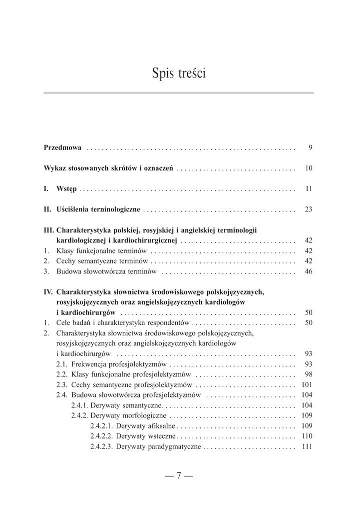 Spis treści Przedmowa . . . . . . . . . . . . . . . . . . . . . . . . . . . . . . . . . . . . . . . . . . . . . . . . . . . . . . . . 9 Wykaz stosowanych skrótów i oznaczeń . . . . . . . . . . . . . . . . . . . . . . . . . . . . . . . . 10 I. Wstęp . . . . . . . . . . . . . . . . . . . . . . . . . . . . . . . . . . . . . . . . . . . . . . . . . . . . . . . . . . 11 II. Uściślenia terninologiczne . . . . . . . . . . . . . . . . . . . . . . . . . . . . . . . . . . . . . . . . . 23 III. Charakterystyka polskiej, rosyjskiej i angielskiej terminologii kardiologicznej i kardiochirurgicznej . . . . . . . . . . . . . . . . . . . . . . . . . . . . . . . 1. Klasy funkcjonalne terminów . . . . . . . . . . . . . . . . . . . . . . . . . . . . . . . . . . . . . . . 2. Cechy semantyczne terminów . . . . . . . . . . . . . . . . . . . . . . . . . . . . . . . . . . . . . . . 3. Budowa słowotwórcza terminów . . . . . . . . . . . . . . . . . . . . . . . . . . . . . . . . . . . . 42 42 42 46 IV. Charakterystyka słownictwa środowiskowego polskojęzycznych, rosyjskojęzycznych oraz angielskojęzycznych kardiologów i kardiochirurgów . . . . . . . . . . . . . . . . . . . . . . . . . . . . . . . . . . . . . . . . . . . . . . . 1. Cele badań i charakterystyka respondentów . . . . . . . . . . . . . . . . . . . . . . . . . . . . 2. Charakterystyka słownictwa środowiskowego polskojęzycznych, rosyjskojęzycznych oraz angielskojęzycznych kardiologów i kardiochirurgów . . . . . . . . . . . . . . . . . . . . . . . . . . . . . . . . . . . . . . . . . . . . . . . . 2.1. Frekwencja profesjolektyzmów . . . . . . . . . . . . . . . . . . . . . . . . . . . . . . . . . . 2.2. Klasy funkcjonalne profesjolektyzmów . . . . . . . . . . . . . . . . . . . . . . . . . . . 2.3. Cechy semantyczne profesjolektyzmów . . . . . . . . . . . . . . . . . . . . . . . . . . . 2.4. Budowa słowotwórcza profesjolektyzmów . . . . . . . . . . . . . . . . . . . . . . . . 2.4.1. Derywaty semantyczne. . . . . . . . . . . . . . . . . . . . . . . . . . . . . . . . . . . . 2.4.2. Derywaty morfologiczne . . . . . . . . . . . . . . . . . . . . . . . . . . . . . . . . . . 2.4.2.1. Derywaty afiksalne . . . . . . . . . . . . . . . . . . . . . . . . . . . . . . . . 2.4.2.2. Derywaty wsteczne . . . . . . . . . . . . . . . . . . . . . . . . . . . . . . . . 2.4.2.3. Derywaty paradygmatyczne . . . . . . . . . . . . . . . . . . . . . . . . . —7— 50 50 93 93 98 101 104 104 109 109 110 111 2.5. 2.6. 2.7. 2.8. 2.4.2.4. Uniwerbizmy . . . . . . . . . . . . . . . . . . . . . . . . . . . . . . . . . . . . . 2.4.2.5. Kontaminacje. . . . . . . . . . . . . . . . . . . . . . . . . . . . . . . . . . . . . 2.4.2.6. Złożenia . . . . . . . . . . . . . . . . . . . . . . . . . . . . . . . . . . . . . . . . . 2.4.3. Derywaty frazeologiczne . . . . . . . . . . . . . . . . . . . . . . . . . . . . . . . . . . 2.4.4. Zapożyczenia . . . . . . . . . . . . . . . . . . . . . . . . . . . . . . . . . . . . . . . . . . . Frekwencja socjolektyzmów . . . . . . . . . . . . . . . . . . . . . . . . . . . . . . . . . . . . Klasy funkcjonalne socjolektyzmów . . . . . . . . . . . . . . . . . . . . . . . . . . . . . Cechy semantyczne socjolektyzmów . . . . . . . . . . . . . . . . . . . . . . . . . . . . . Budowa słowotwórcza socjolektyzmów . . . . . . . . . . . . . . . . . . . . . . . . . . . 2.8.1. Derywaty semantyczne. . . . . . . . . . . . . . . . . . . . . . . . . . . . . . . . . . . . 2.8.2. Derywaty morfologiczne . . . . . . . . . . . . . . . . . . . . . . . . . . . . . . . . . . 2.8.2.1. Derywaty afiksalne . . . . . . . . . . . . . . . . . . . . . . . . . . . . . . . . 2.8.2.2. Derywaty wsteczne . . . . . . . . . . . . . . . . . . . . . . . . . . . . . . . . 2.8.2.3. Derywaty paradygmatyczne . . . . . . . . . . . . . . . . . . . . . . . . . 2.8.2.4. Uniwerbizmy . . . . . . . . . . . . . . . . . . . . . . . . . . . . . . . . . . . . . 2.8.2.5. Kompozycje. . . . . . . . . . . . . . . . . . . . . . . . . . . . . . . . . . . . . . 2.8.3. Derywaty frazeologiczne . . . . . . . . . . . . . . . . . . . . . . . . . . . . . . . . . . 2.8.4. Zapożyczenia . . . . . . . . . . . . . . . . . . . . . . . . . . . . . . . . . . . . . . . . . . . 112 116 116 117 119 126 129 130 132 132 136 136 137 137 137 137 138 139 V. Wnioski . . . . . . . . . . . . . . . . . . . . . . . . . . . . . . . . . . . . . . . . . . . . . . . . . . . . . . . . 148 Bibliografia . . . . . . . . . . . . . . . . . . . . . . . . . . . . . . . . . . . . . . . . . . . . . . . . . . . . . . . . 155 —8— Przedmowa Monografia autorstwa Anny Suchodolskiej jest pierwszą próbą ukazania określonego w tytule działu specjalistycznego słownictwa medycznego w ujęciu komparatystycznym. Autorka zarysowała całość procesów leksykalno-słowotwórczych, determinujących zjawiska nominacji, które zachodzą na gruncie terminologii, profesjolektów i socjolektów kardiologów oraz kardiochirurgów. Uwzględnienie trzech obszarów językowych: polskiego, rosyjskiego i angielskiego pozwoliło na ukazanie wspólnych tendencji rozwojowych, wzajemnych wpływów i dyferencjacji leksykalnej, a zarysowane tło socjolingwistyczne umożliwia interpretację procesów nominacyjnych w kontekście czynników zewnętrznojęzykowych i pozajęzykowych. Monografia autostwa Anna Suchodolskiej w oryginalny sposób wpisuje się w nurt interpretacji przemian współczesnego słownictwa specjalistycznego w kontekście europejskiego (a także światowego) kontinuum kulturowego. Kierownik Pracowni Językoznawstwa Stosowanego Instytutu Polonistyki Stosowanej UW Prof. dr. hab. Stanisław Dubisz —9—