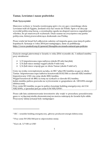 Tamar. Importowana ropa naftowa kosztowała $110/bbl co dawało $20/mmbtu2.