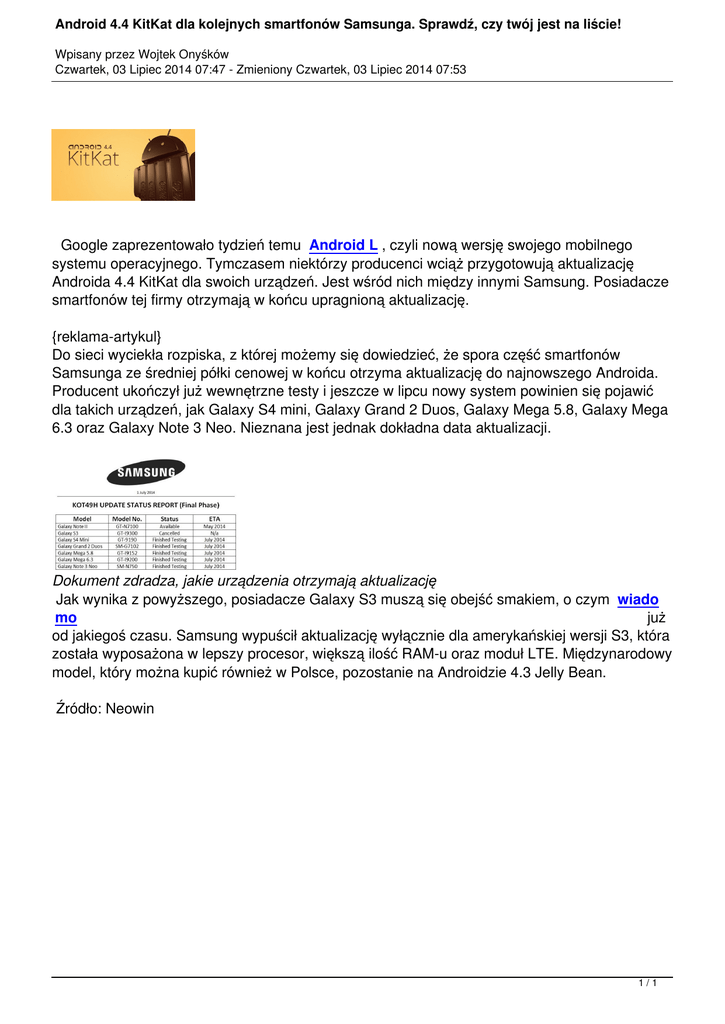 6.3 oraz Galaxy Note 3 Neo. Nieznana jest jednak dokładna data aktualizacji.