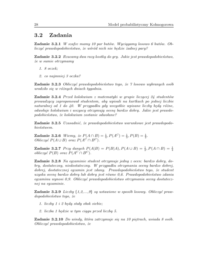Zadanie 3.2.10 Do windy, która zatrzymuje siȩ na 10 piȩtrach, wsiada 8 osób.