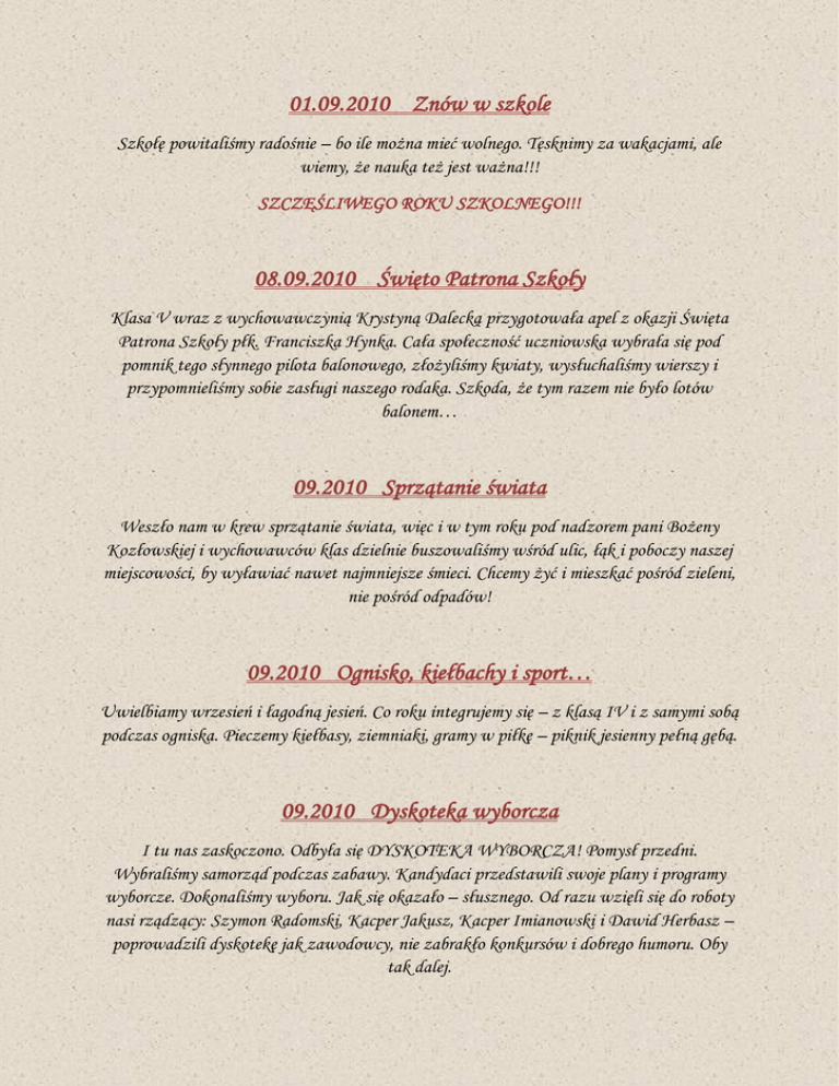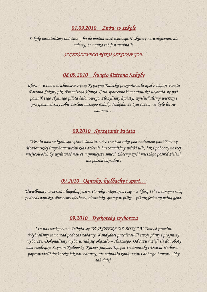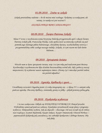 01.09.2010 Znów w szkole 08.09.2010 Święto Patrona Szkoły