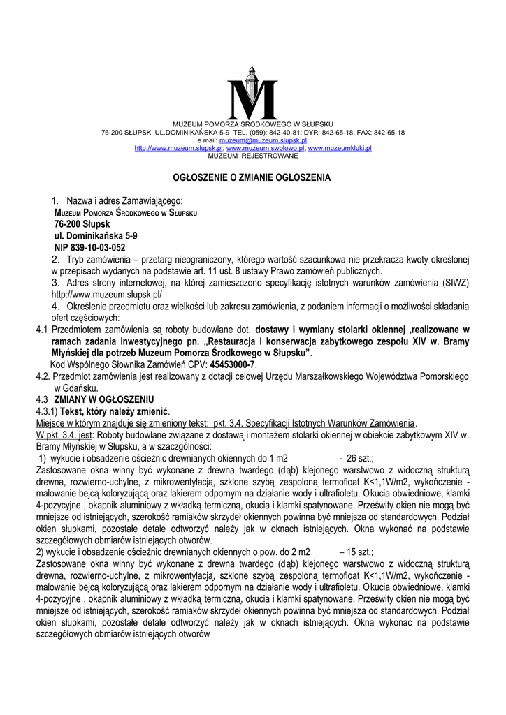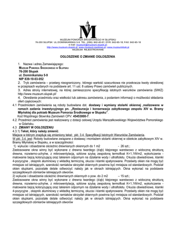 ogłoszenie o zamówieniu - Muzeum Pomorza Środkowego