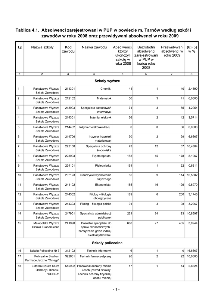 T-II/P-4.1. Absolwenci zarejestrowani w PUP w powiecie m. Tarnów