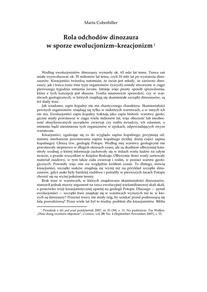 Rola odchodów dinozaura w sporze ewolucjonizm–kreacjonizm1