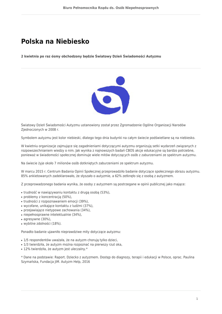 Polska na Niebiesko - Biuro Pełnomocnika Rządu ds. Osób
