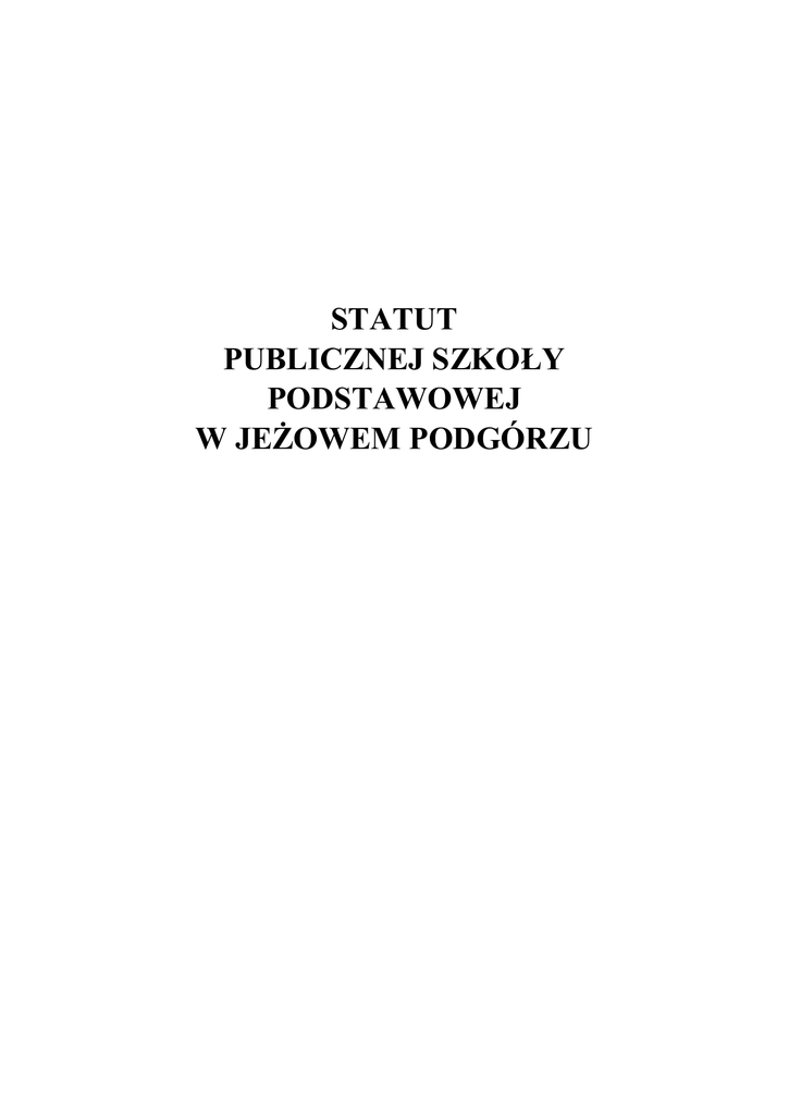 STATUT PUBLICZNEJ SZKOŁY PODSTAWOWEJ W JEŻOWEM PODGÓRZU ROZDZIAŁ I Nazwa szkoły i informacje o szkole. §1 Szkoła nosi nazwę: Publiczna Szkoła Podstawowa w Jeżowem Podgórzu. Siedzibą szkoły jest budynek szkolny w Jeżowem Podgórzu w gminie Jeżowe. §2 Szkoła jest publiczną placówką oświatową w rozumieniu art. 7 ustawy z dnia 7 września 1991r. o systemie oświaty, z późniejszymi zmianami dotyczącymi szkół publicznych, zarządzeniami i rozporządzeniami MEN. §3 Organem prowadzącym szkołę jest Gmina Jeżowe. Czas trwania cyklu kształcenia w szkole zgodnie z przepisami oświatowymi wynosi 6 lat. Obejmuje klasy I-VI. §4 Organem sprawującym nadzór jest Kurator Oświaty w Rzeszowie. ROZDZIAŁ II Cele i zadania szkoły. §5 Szkoła zapewnia uczniom pełny rozwój umysłowy, moralny, emocjonalny i fizyczny w zgodzie z ich potrzebami i możliwościami psychofizycznymi, w warunkach poszanowania ich godności osobistej, wyznaniowej i światopoglądowej. W realizacji tego zadania szkoła respektuje chrześcijański system wartości, za podstawę przyjmuje uniwersalne zasady etyki, zasady nauk pedagogicznych, przepisy prawa, a także zobowiązania wynikające z Powszechnej Deklaracji Praw Człowieka ONZ, Deklaracji Praw Dziecka ONZ oraz Konwencji o Prawach Dziecka. §6 Szkoła zapewnia uczniom opiekę pedagogiczną oraz pełne bezpieczeństwo w czasie zajęć organizowanych przez szkołę na jej terenie oraz poza terenem szkoły w trakcie wycieczek organizowanych przez szkołę: 1. Podczas zajęć obowiązkowych, nadobowiązkowych i poza lekcyjnych za bezpieczeństwo uczniów odpowiada nauczyciel prowadzący zajęcia. 2. Podczas zajęć poza terenem szkoły pełną odpowiedzialność za zdrowie i bezpieczeństwo uczniów ponosi nauczyciel prowadzący zajęcia, a podczas wycieczek szkolnych - kierownik wycieczki wraz z opiekunami. 3. W czasie przerw między lekcyjnych za bezpieczeństwo uczniów odpowiadają nauczyciele dyżurujący. 4. Harmonogram dyżurów opracowuje dyrektor szkoły. §7 Szkoła umożliwia uczniom zdobycie wiedzy i umiejętności niezbędnych do uzyskania świadectwa ukończenia szkoły. §8 Szkoła umożliwia uczniom rozwój talentów i zainteresowań poznawczych, społecznych, artystycznych i sportowych poprzez organizowanie zajęć dodatkowych dla uczniów, z uwzględnieniem w szczególności ich potrzeb rozwojowych. §9 Szkoła umożliwia uczniom realizację obowiązku szkolnego oraz kontroluje jego spełnienie. §10 Szkoła zapewnia opiekę dzieciom niepełnosprawnym, z wadami wymowy, słuchu, wzroku i innymi, poprzez organizowanie współpracy z poradniami pedagogiczno-psychologicznymi oraz innymi instytucjami świadczącymi poradnictwo i specjalistyczną pomoc dzieciom i rodzicom. §11 Organizuje pomoc materialną dla uczniów z rodzin wielodzietnych, sierot i z rodzin patologicznych. §12 Ustala zasady i formy współdziałania szkoły z rodzicami, prawnymi opiekunami w zakresie kształcenia, wychowania i profilaktyki. §13 Dyrektor szkoły powierza każdy oddział szczególnej opiece wychowawczej jednemu nauczycielowi, zwanemu dalej wychowawcą. §14 Zadania wychowawcze szkoły określa program wychowawczy szkoły opracowany i uchwalony przez Radę Pedagogiczną po zasięgnięciu opinii Rady Rodziców i Samorządu Uczniowskiego, który stanowić będzie załącznik do niniejszego statutu. §15 Szczegółowe zasady oceniania określa szkolny system oceniania opracowany i uchwalony przez Radę Pedagogiczną po zasięgnięciu opinii Rady Rodziców i Samorządu Uczniowskiego, który stanowić będzie załącznik do niniejszego statutu. ROZDZIAŁ III Organy szkoły oraz ich zadania. §16 Organami szkoły są: 1. Dyrektor szkoły. 2. Rada Pedagogiczna. 3. Rada Rodziców. 4. Samorząd Uczniowski. §17 Kompetencje organów szkoły: Do obowiązków dyrektora szkoły należy: 1. Opracowanie dokumentów programowo-organizacyjnych szkoły, tj. szkolnego planu wychowawczego, arkusza organizacyjnego szkoły i tygodniowego rozkładu zajęć. 2. Opracowanie oraz zatwierdzenie zakresu obowiązków nauczycieli i pracowników niepedagogicznych szkoły. 3. Dobór kadry pedagogicznej i pracowników niepedagogicznych oraz ich zatrudnianie i zwalnianie. 4. Kierowanie całokształtem szkoły a w szczególności: - sprawowanie opieki nad uczniami oraz stwarzanie warunków harmonijnego ich rozwoju, - współdziałanie z Samorządem Uczniowskim, - podejmowanie decyzji w sprawie realizacji obowiązku szkolnego, - zapewnienie bezpieczeństwa i higieny pracy oraz nauki, - pełnienie nadzoru pedagogicznego nad działalnością nauczycieli i wychowawców, organizowanie doskonalenia zawodowego kadry pedagogicznej oraz oceniania tej kadry, - współdziałanie z Radą Rodziców i zapewnienie jej wpływu na działalność szkoły, - realizacja uchwał Rady Pedagogicznej i Rady Rodziców, podjętych w ramach ich kompetencji oraz wstrzymanie uchwał niezgodnych z prawem, - dysponowanie środkami określonymi w planie finansowym szkoły oraz ich prawidłowe i racjonalne wykorzystywanie, - wykonywanie innych zadań wynikających z przepisów szczegółowych. Dyrektor szkoły ma prawo do: 1. Wydawania poleceń służbowych wszystkim pracownikom szkoły. 2. Zatrudniania i zwalniania nauczycieli oraz pracowników niepedagogicznych. 3. Przyznawania nagród oraz wymierzania kar porządkowych nauczycielom i innym pracownikom szkoły zgodnie z Regulaminem Pracy. 4. Oceny pracy nauczycieli i innych pracowników. 5. Reprezentowania szkoły na zewnątrz. 6. Inicjowania eksperymentów i nowoczesnych metod nauczania. 7. Na podstawie uchwały Rady Pedagogicznej dyrektor może wnioskować do Kuratora Oświaty o przeniesienie ucznia do innej szkoły. Dyrektor szkoły odpowiada za: 1. Poziom uzyskiwanych wyników nauczania i wychowania. 2. Zgodność funkcjonowania szkoły z przepisami prawa oświatowego i niniejszego statutu. 3. Bezpieczeństwo osób znajdujących się w obiekcie podczas zaję