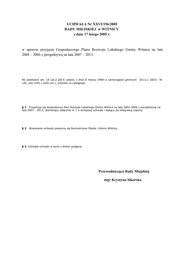 UCHWAŁA Nr XXVI/156/2005