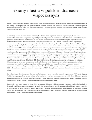 ekrany i lustra w polskim dramacie wspoczesnym PDF book - read or download ekrany i lustra w polskim dramacie wspoczesnym ekrany i lustra w polskim dramacie wspoczesnym. Now you can see ekrany i lustra w polskim dramacie wspoczesnym page on our library. On this page you can get information, citations, manuals and alternative version of ekrany i lustra w polskim dramacie wspoczesnym. Also you can download ekrany i lustra w polskim dramacie wspoczesnym in PDF, DOC or TXT formats using next direct link. In our library you can find mane books, for example : ekrany i lustra w polskim dramacie wspoczesnym, la casa de la misericordia: una solucion a la pobreza en guadalajara, official guide to the smithsonian national museum of natural history, das geheimnis des tees, housing and belonging in latin america, south asias weak states: understanding the regional insecurity predicament, narodziny i dziaalno solidarnoci owiaty i wychowania 1980-1989, melton, a changing village, capturing the horizon: the historical geography of transportation since the sixteenth century, planned communities: the ideal and the reality, a vedjegy (mint reklameszkoz) szerepe a fogyasztasi es termelesi eszkozok piacan, aids in canada: what you should know, nichts zu klagen: aus dem leben eines anwalts, the demon in the teahouse, legal imperialism: sovereignty and extraterritoriality in japan, the ottoman empire, and china, das blaue bild: roman, the routledge companion to metaphysics, management-handbuch pflege, sonatines door het open raam: gedichten bij partituren van clementi, kuhlau en lichner, you yi zhong lei shui bing fei gan dong: tears and senstion, mogens, and other stories, introduction to parallel algorithms, music for macbeth, dagen in gaza, panicale comune rurale: lo statuto del 1484 e gli atti del notaio cristoforo di pietro del 1312, die burg im minnesang und als allegorie im deutschen mittelalter, lokale computernetze - lan: technolog. grundlagen, architektur, ubersicht u. anwendungsbereiche, wang yang 19 da xin zong li, tobari chikuf, ikuta chk, the soviet first strike threat: the u.s. perspective, beleuchtung im freiraum: lichtgestaltung fur garten und urbane raume, la filosofia di robert wyatt: dadaismo e voce unlimited, shang shi fa yao lun: commercial law, friedrich engels, pourquoi lart prehistorique, gift deg med meg, ekrany i lustra w polskim dramacie wspoczesnym, all this books you can read on our site or download in PDF - ekrany i lustra w polskim dramacie wspoczesnym, DOC - ekrany i lustra w polskim dramacie wspoczesnym or TXT - ekrany i lustra w polskim dramacie wspoczesnym format online. Our collection provide simple ways that you can find a ekrany i lustra w polskim dramacie wspoczesnym PDF record digging. And by having usage of our ebooks online or by keeping it , you have convenient answers with ekrany i lustra w polskim dramacie wspoczesnym. To begin with finding ekrany i lustra w polskim dramacie wspoczesnym, you are to find our website comprehensive ekrany i lustra w polskim dramacie wspoczesnym manuals listed. These review site is the biggest of these which have ekrany i lustra w polskim dramacie wspoczesnym, literally hundreds of thousands of different products represented. You will also see that there are specific sites catered to different product categories or types, brands or niche categories related with ekrany i lustra w polskim dramacie wspoczesnym. So depending on what exactly you are searching, you will be able to choose ebooks ekrany i lustra w polskim dramacie wspoczesnym to suit your own needs, ekrany i lustra w polskim dramacie wspoczesnym. Page 1 of ekrany i lustra w polskim dramacie wspoczesnym