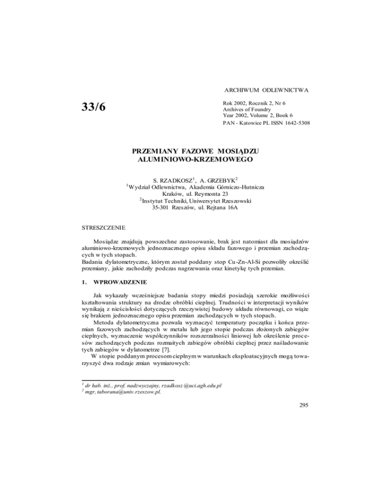 BADANIA DYLATOMETRYCZNE STOPU Cu-Zn-Al-Si