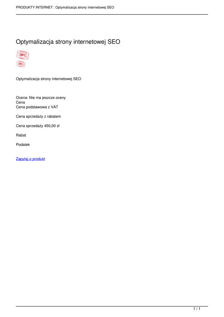 PRODUKTY INTERNET : Optymalizacja strony internetowej SEO