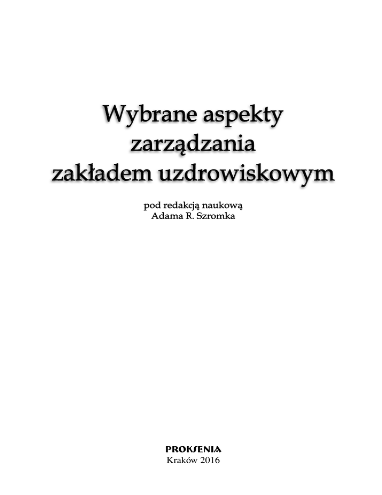Wybrane aspekty zarządzania zakładem uzdrowiskowym pod redakcją naukową Adama R. Szromka PROKSENIA Kraków 2016 25 Publikacja z serii „Monografie o tematyce turystycznej” Redakcja naukowa: Recenzenci: prof. nzw. dr hab. inż. Adam R. Szromek prof. UP dr hab. Peter Cuka – Uniwersytet Pedagogiczny w Krakowie dr Katarzyna Czernek – Uniwersytet Ekonomiczny w Katowicach dr Katarzyna Gmyrek – Akademia Wychowania Fizycznego w Krakowie prof. AWF dr hab. Andrzej Hadzik – Akademia Wychowania Fizycznego w Katowicach prof. dr hab. Tadeusz Kasperczyk – Akademia Wychowania Fizycznego w Krakowie prof. UE dr hab. Zygmunt Kruczek – Akademia Wychowania Fizycznego w Krakowie dr Justyna Maciąg – Uniwersytet Ekonomiczny w Katowicach prof. UE dr hab. Marzena Strojek-Filus – Uniwersytet Ekonomiczny w Katowicach prof. UP dr hab. Michał Żemła – Uniwersytet Pedagogiczny w Krakowie Korekta tekstu: Marek Chadziński Zdjęcia na okładce: Zygmunt Kruczek Leszek Nowak (pijalnia wód mineralnych w Polanicy-Zdroju) Wydawca: Wydawnictwo „PROKSENIA” ul. Sarego 23/2, 31-047 Kraków, tel./fax: + 48 12 421 63 80 www.proksenia.pl, e-mail: [email protected] Spis treści Wprowadzenie ........................................................................................................................................... 7 Adam R. Szromek 1. Wykorzystanie mediów internetowych w promocji marki zakładów lecznictwa uzdrowiskowego ................................................................................................................................ 11 Krzysztof Herman, Mateusz Naramski, Adam R. Szromek 1.1. 1.2. 1.3. 1.4. 1.5. Wprowadzenie ................................................................................................................................................ 11 Marka zakładów lecznictwa uzdrowiskowego ............................................................................................... 12 Media internetowe .......................................................................................................................................... 16 Możliwości wykorzystania mediów internetowych do promocji marki ZLU................................................ 19 Zakończenie.................................................................................................................................................... 23 2. Ocena wizerunku medialnego zakładów lecznictwa uzdrowiskowego na przykładzie uzdrowisk zrzeszonych w Unii Uzdrowisk Polskich – wyniki badań ................ 27 Mateusz Naramski, Krzysztof Herman, Adam R. Szromek 2.1. Wprowadzenie ................................................................................................................................................ 27 2.2. Pojęcie wizerunku, marki i tożsamości marki ................................................................................................ 28 2.3. Wizerunek obiektów turystycznych w internecie........................................................................................... 29 2.3.1. Rozwój dostępu do internetu w Polsce ............................................................................................... 30 2.3.2. Społeczności internetowe i ich wpływ na kreowanie wizerunku obiektów turystycznych ................ 30 2.3.3. Media internetowe jako rozwinięcie mediów tradycyjnych ............................................................... 31 2.4. Badanie treści publikowanych w internecie na temat zakładów uzdrowiskowych........................................ 32 2.4.1. Charakterystyka publikowanych treści o uzdrowiskach ..................................................................... 33 2.4.2. Analiza liczby odbiorców, zasięgu i skuteczności docierania materiałów publikowanych w sieci do potencjalnych odbiorców ................................................................................................... 38 2.4.3. Odbiór treści nt. zakładów uzdrowiskowych w sieci .......................................................................... 41 2.4.4. Podsumowanie wyników badania ....................................................................................................... 45 2.5. Omówienie wyników i zakończenie............................................................................................................... 45 3. Sprawność operacyjna procesu zarządzania komunikacją internetową z klientem w polskich przedsiębiorstwach uzdrowiskowych z uwzględnieniem potrzeb osób pełnosprawnych i niepełnosprawnych ............................................................................................ 49 Anna Otremba, Adam R. Szromek 3.1. 3.2. 3.3. 3.4. 3.5. Wprowadzenie ................................................................................................................................................ 49 Metoda Mystery Shopping ............................................................................................................................. 50 Turystyka uzdrowiskowa i lecznictwo uzdrowiskowe w Polsce.................................................................... 52 Analiza przeprowadzonego badania ............................................................................................................... 53 Wyniki badań .................................................................................................................................................. 55 3.5.1. Czas reakcji na zapytanie .................................................................................................................... 55 3.5.2. Wartość merytoryczna wiadomości zwrotnej ..................................................................................... 56 3.5.3. Treść odpowiedzi ................................................................................................................................ 57 3.5.4. Utrzymywanie dalszego ko
