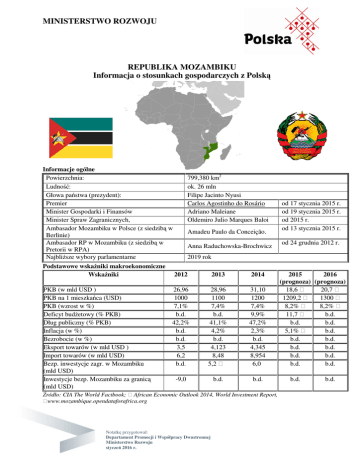 MINISTERSTWO ROZWOJU REPUBLIKA MOZAMBIKU Informacja o