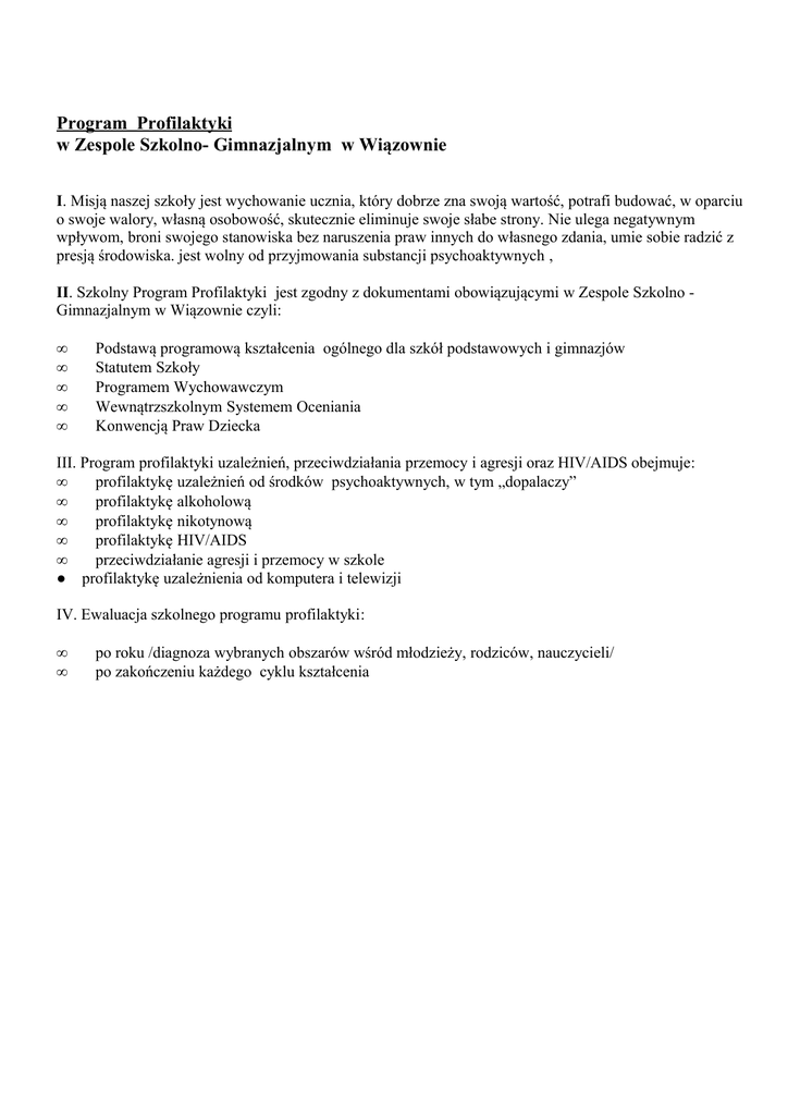Program Profilaktyki w Zespole Szkolno