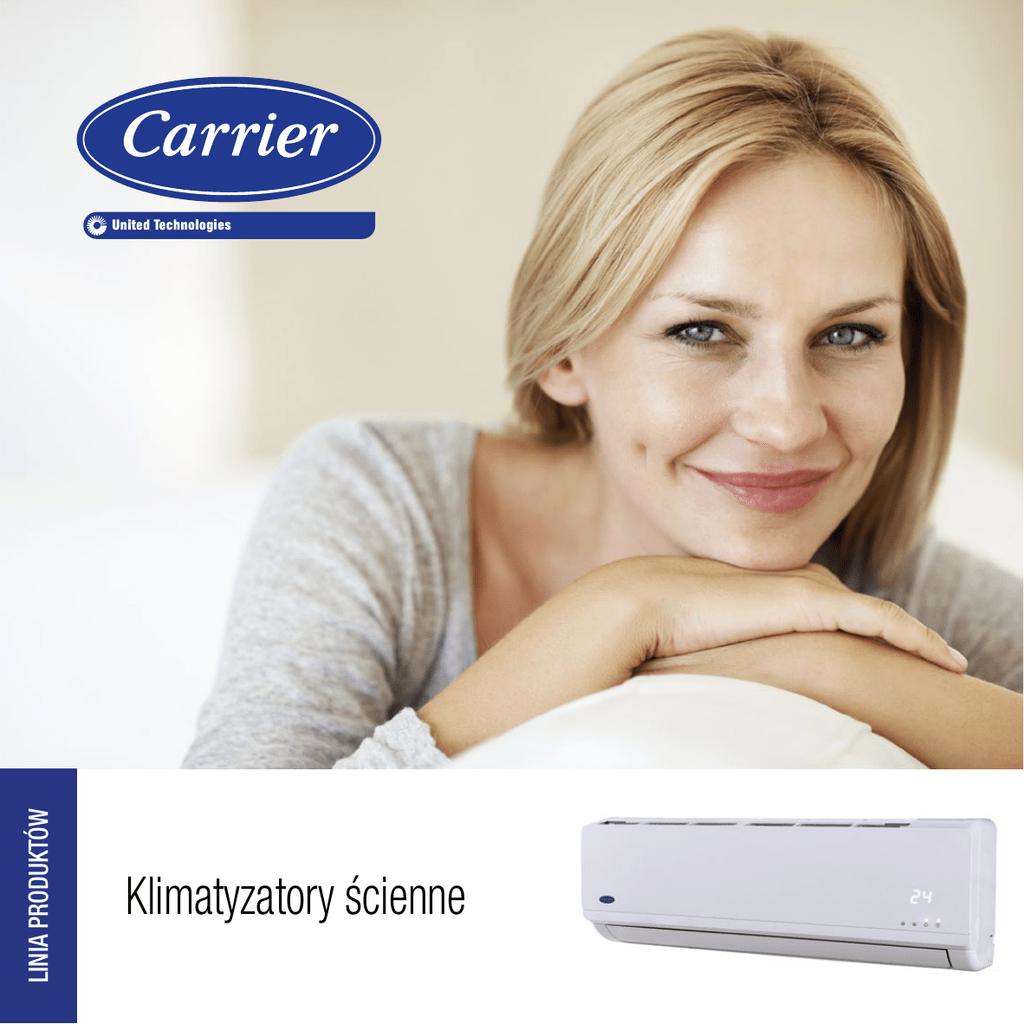 LINIA PRODUKTÓW Klimatyzatory ścienne Klimatyzacja Carrier Oszczędność Maksymalna oszczędność energii dzięki dokładnej cyfrowej kontroli mocy i superwydajnej sprężarce. Komfort Niezrównany komfort poprzez szybkie osiąganie i równomierne utrzymanie wymaganej temperatury pomieszczenia. Cicha praca Niezwykle cicha jednostka wewnętrzna przez bezszczotkowy silnik DC i zaprojektowanie przepływu powietrza. 2 Twoje urządzenie wysuszy wnętrze po wyłączeniu by zapobiec rozwojowi pleśni. Samoczyszczenie Gdy uruchomisz urządzenie to żaluzja ustawi się w tym samym położeniu w jakim była przy wyłączeniu. Pamięć położenia żaluzji Ukryty wyświetlacz Światło może być wyłączone z pilota nawet gdy urządzenie pracuje. 3 Pilot Z „intuicyjnym” pilotem wszystkie funkcje masz pod ręką. Za mną Gdy naciśniesz przycisk „Follow me”, to urządzenie będzie bazowało na temperaturze wokół pilota. Programator Uzyj funkcji „Timer” by uzyskać najbardziej komfortowy klimat kiedy tylko chcesz. 4 Tryb ciszy Gdy na pilocie wybierzesz „silence”, to wewnętrzny wentylator zwolni bieg. Lekka bryza utrzyma komfort waszego środowiska. 5 Zaawansowana Technologia Inwerterowa 6 Wysoka sprawność inwertera Carrier’a wywodzi się z najnowszej technologii sprężarek inwerterowych DC. Rezultatem jest nieinwazyjna, światowej klasy wydajność w oszczędności energii oraz komfort. Po zaniku zasilania urządzenie samoczynnie wznowi pracę w tym samym trybie. Auto Restart 1W w trybie „Standby” Jeżeli klimatyzator wykryje nieszczelność to automatycznie zatrzyma pracę a wyświetlacz pokaże odpowiedni kod. Detekcja nieszczelności Zaawansowana technologia umożliwia produktom Carrier na minimalny pobór energii podczas postoju. 7 SPECYFIKACJA URZĄDZEŃ ŚCIENNYCH QHF 8 JEDNOSTKA WEWNĘTRZNA 42QHF009DS(G) 42QHF012DS(G) 42QHF018DS(G) 42QHF022DS(G) AGREGAT ZEWNĘTRZNY 38QUS009DS(N) 38QUS012DS(N) 38QUS018DS(N) 38QUS022DS(N) Wydajność chłodnicza kW 2.7 (1.0-3.2) 3.5 (1.0-3.6) 5.1 (1.5-5.3) 6.4 (1.7-6.6) Wydajność grzewcza kW 2.9 (1.0-3.5) 3.8 (1.0-4.1) 5.2 (1.3-5.6) 6.4 (1.5-6.8) Wydajność grzewcza przy -7 ºC kW 2.7 3.2 3.8 4.3 Wydajność grzewcza przy -10 ºC kW 2.5 3.1 3.5 4.2 Wydajność grzewcza przy -15 ºC kW 2.2 2.7 3.1 4.1 Projektowana wydajność chłodzenia kW 2.7 3.5 5.1 6.4 Projektowana wydajność grzania (sez. średni) kW 2.2 2.8 4.2 5.2 Projektowana wydajność grzania (sez. cieplejszy) kW 2.3 3.0 4.5 5.6 Zakres pracy agregatu w trybie chłodzenia ºC -10~46 -10~46 -10~46 -10~46 Zakres pracy agregatu w trybie grzania ºC -15~24 -15~24 -15~24 -15~24 6.1 / 4.0 / 5.2 6.1 / 4.0 / 5.0 6.2 / 4.0 / 5.0 6.2 / 4.0 / 4.7 A++ / A+ / A+++ A++ / A+ / A++ A++ / A+ / A++ A++ / A+ / A++ SEER / SCOP (sez. śred.) / SCOP (sez. cieplejszy) W/W Klasa energetyczna Roczne zużycie energii kWh 155 / 770 / 619 201 / 980 / 840 288 / 1470 / 1260 361 / 1820 / 1668 EER/COP W/W 3.3 / 3.8 2.9 / 3.1 2.9 / 3.3 2.9 / 3.1 230V / 50Hz 230V / 50Hz 230V / 50Hz 230V / 50Hz Zasilanie / Hz Prąd nominalny (chłodzenie) A 3.7 5.5 8.1 9.9 Pobór mocy (chłodzenie) W 810 1210 1760 2200 Prąd nominalny (grzanie) A 3.5 5.7 7.3 9.2 Pobór mocy (grzanie) W 760 1250 1600 2050 Prąd maksymalny A 9.5 9.5 12.5 13.0 Maksymalny pobór mocy W 2100 2100 2750 2950 JEDNOSTKA WEWNĘTRZNA Poziom mocy akustycznej dB(A) Poziom ciśnienia akustycznego (wys./śr./niski/cisza) dB(A) 42QHF009DS(G) 42QHF012DS(G) 42QHF018DS(G) 42QHF022DS(G) 57 58 59 63 42/38/34/22 44/40/36/23 45/41/38/24 50/48/43/29 470/390/300/180 500/390/300/180 600/500/400/260 900/820/700/450 Strumień powietrza (wys./śr./niski/cisza) m3/h Masa (Netto/Brutto) kg 7.5 / 10.5 7.5 / 10.5 9.5 / 13.0 12.5 / 17.5 Wymiary (Szer.xGł.xWys) mm 800x188x275 800x188x275 940x205x275 1045x235x315 38QUS009DS(N) 38QUS012DS(N) 38QUS018DS(N) 38QUS022DS(N) JEDNOSTKA ZEWNĘTRZNA dB(A) 61 62 63 68 Poziom ciśnienia akustycznego dB(A) 53 54 55 58 Strumień powietrza m3/h 1800 2000 2000 2500 Masa (Netto/Brutto) kg 27.5 / 29.5 30.5 / 33.0 37.0 / 40.0 47.0 / 50.0 Wymiary (Szer.xGł.xWys) mm 780x250x540 810x310x 558 810x310x558 845x320x700 Ilość czynnika kg 0.80 1.03 1.70 1.95 Strona cieczowa/gazowa mm(inch) Standardowa długość instalacji m 5 5 5 5 Minimalna długość instalacji m 3 3 3 3 Maksymalna długość instalacji m 20 20 25 25 Maksymalna różnica m 8 8 10 10 Dodatkowy ładunek g/m 15 15 15 30 ORUROWANIE Nota * Kod modelu Wewnętrzna Europa Zach. 42QHFxxxDS Niemcy 42QHFxxxDSG Wersja „Nordic” 42QHFxxxDS * Dane akustyczne dla trybu chłodzenia Zewnętrzna 38QUSxxxDS 38QUSxxxDS 38QUSxxxDSN 6.35/9.52 (1/4”/3/8”) 6.35/9.52 (1/4”/3/8”) 6.35/12.7 (1/4”/1/2”) 9.52/15.9 (3/8”/5/8”) Uwaga to jest standard dodatkowa litera „G” dla Wewnętrznej dodatkowa litera „N” dla Zewnętrznej SPECYFIKACJA URZĄDZEŃ ŚCIENNYCH QHF Poziom mocy akustycznej 9 Więcej informacji na stronie www.carrier-beijerref.com