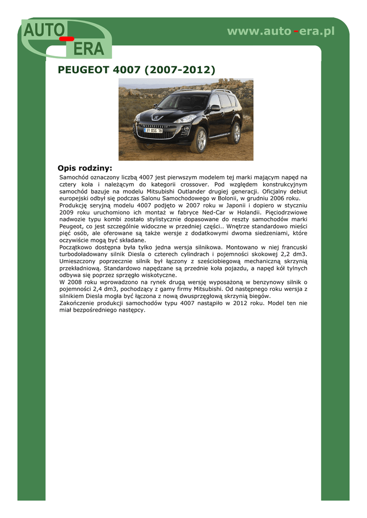 Opis rodziny: PEUGEOT 4007. - AUTO-ERA