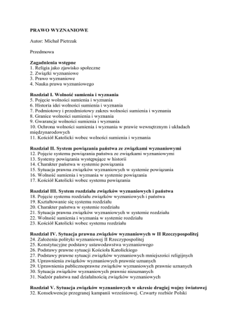 PRAWO WYZNANIOWE Autor: Michał Pietrzak Przedmowa