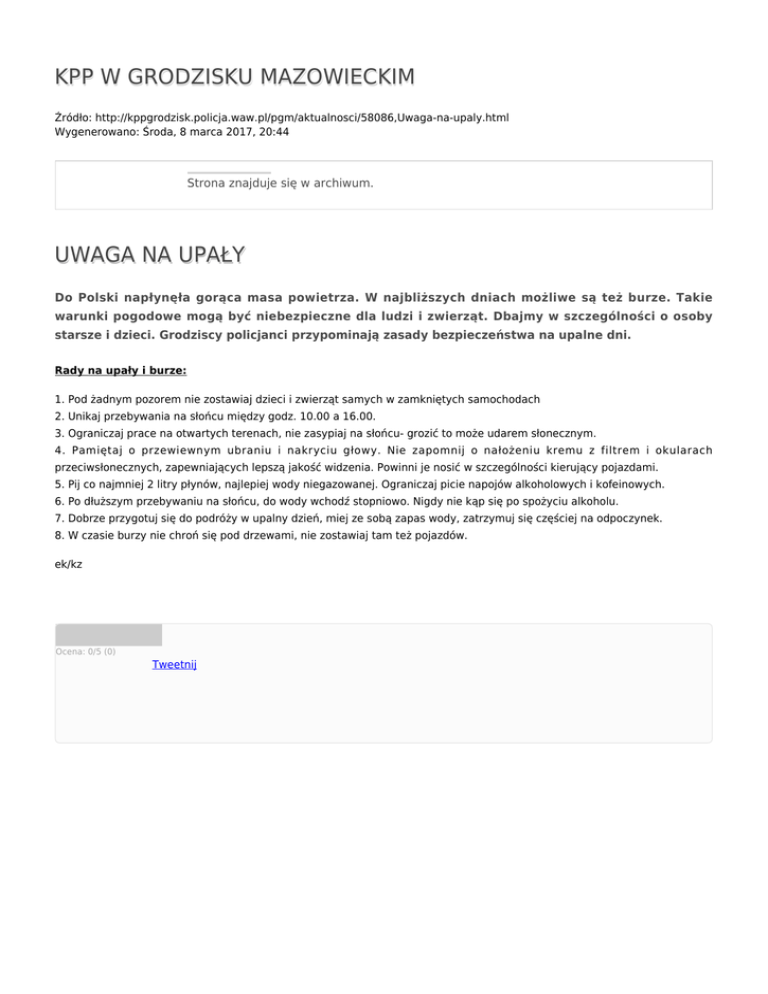 KPP W GRODZISKU MAZOWIECKIM UWAGA NA UPAŁY