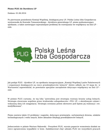 Firmy Leśne - Pismo PLIG do Dyrektora LP