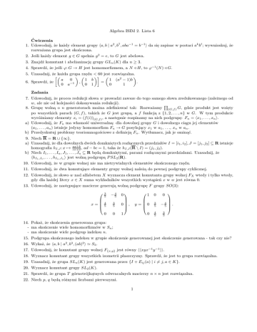 1. Udowodnij, że każdy element grupy ha, b | a2 , b7 , aba−1 = b−1 i da sie zapisac w postaci ak bℓ ; wywnioskuj, że