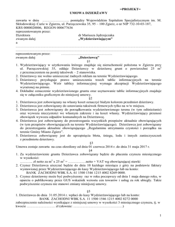 Projekt umowy dzierżawy