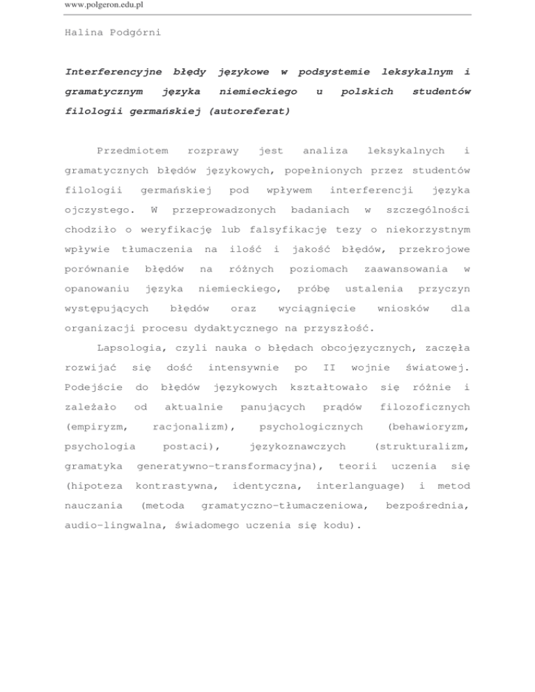 Halina Podgórni Interferencyjne błędy językowe