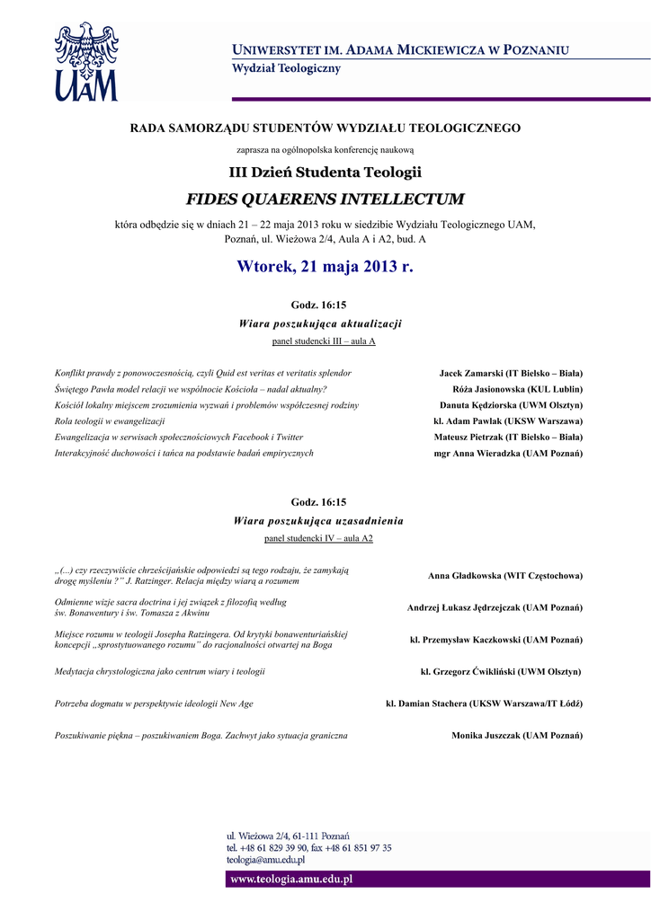 Szczegółowy progrma III Dnia Studenta Teologii cz. II