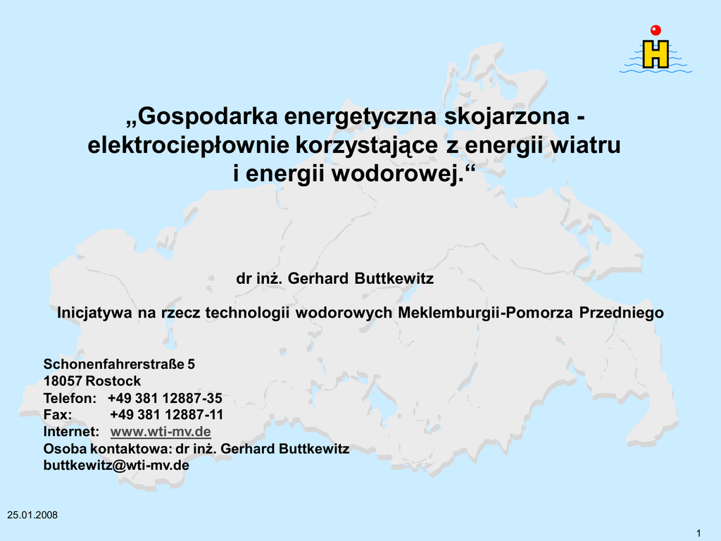 „Gospodarka energetyczna skojarzona elektrociepłownie korzystające z energii wiatru i energii wodorowej.“ dr inż. Gerhard Buttkewitz Inicjatywa na rzecz technologii wodorowych Meklemburgii-Pomorza Przedniego Schonenfahrerstraße 5 18057 Rostock Telefon: +49 381 12887-35 Fax: +49 381 12887-11 Internet: www.wti-mv.de Osoba kontaktowa: dr inż. Gerhard Buttkewitz [email protected] 25.01.2008 1 Przykład znacznych wahań zasilania w energię elektryczną wytwarzaną z wiatru 25.01.2008 2 Przyszła, docelowa funkcja elektrowni wiatrowych Powinna ona polegać na produkcji prądu ze zmiennej energii wiatru z uwzględnieniem typowego zapotrzebowania na energię elektryczną, czyli należy dostarczać tyle energii, ile zażyczy sobie konsument. Dalsze funkcje: - Energia może być dostarczana bez wytwarzania CO2. - Oferowany może być prąd szczytowego obciążenia. 25.01.2008 3 Buforowanie energii wiatru za pomocą wodoru en.elektr. Elektroliza Elektroliza alkaliczna - skuteczna technologia - ciśnienie wyjściowe 25 bar - wysoki zakres działania - wysoka wydajność Zbiornik wodoru Zbiornik ciśnieniowy - prosta i skuteczna technologia - brak strat magazynowych - możliwe wykorzystanie zbiorników podziemnych (jaskini) Zasilanie zwrotne en.elektr. Silnik spalinowy/turbina gazowa - silnik typu Otto – łatwo podatny na przeróbki - znana technologia - turbina gazowa dla zakresu MW - ogniwa paliwowe - w przyszłości Miege / 13. REGWA Stralsund 2006 25.01.2008 4 Zalety buforowania energii wiatru za pomocą wodoru Quelle: Fachhochschule Lübeck 25.01.2008 5 Wady buforowania energii wiatru za pomocą wodoru Współczynnik sprawności • Agregat elektrolityczny współczynnik sprawności: energia elektryczna energia wodorowa < 70 % • BHKW współczynnik sprawności: energia wodorowa energia elektryczna - Generator spalinowy < 40 % - Ogniwo paliwowe < 60 % Całkowity współczynnik sprawności: 25 do 40 % 25.01.2008 6 Wodór... za & przeciw • Zielony wodór jako jedyne rozwiązanie energetyczne –> Sieci przesyłowe nie będą już potrzebne! • Bezpośrednie wykorzystanie prądu i H2 do zastosowań mobilnych oraz aukcje prądu elektrowni hybrydowych! • Wodór jest niszczeniem energii –> przyszłość należy do bezpośrednich akumulatorów prądu (Supercaps & baterie) ! 25.01.2008 7 Dystrybucja energii podstawowej w Niemczech • ok. 20 % stanowi energia elektryczna • ok. 25 % stanowi ruch pojazdów • ok. 55 % stanowi energia cieplna 25.01.2008 8 Wariant 1 Energia wiatru w produkcji wodoru i tlenu oraz ciepła bez zasilania zwrotnego • wykorzystanie jako gaz techniczny • paliwo dla pojazdów Quelle: Joanneum Research Forschungsgesellschaft mbH 25.01.2008 9 Quelle: Joanneum Research Forschungsgesellschaft mbH 25.01.2008 10 Quelle: Joanneum Research Forschungsgesellschaft mbH 25.01.2008 11 Właściwe koszty pozyskania energii z wodoru Przy wyłącznym wykorzystaniu H2: 11 ct/kWh Przy korzystaniu z H2-, O2- oraz ciepła (ok. 16 %): 4,5 ct/kWh 25.01.2008 12 Wariant 2 Propozycja realizacji zaopatrzenia regionu w energię elektryczną i cieplną oraz wodór i tlen na bazie energii wiatru. Samodzielna elektrownia na bazie energii wiatru W wypadku asilania w entralnej sieci nergetycznej 20 KV / 400 V Trafostacja energiaelektryczna zmienna………. Siłownia wiatrowa (WK) Energia przesyłana bezpośrednio z WK lub w wypadku zasilania awaryjnego - energia elektryczna Zamiennik i zbiornik energii na bazie H2 - Generator elektrolityczny - Zbiornik H2- BHKW (na bazie generatora spalinowego lub ogniwa paliwowego) - Pompa ciepła energia elektryczna BHKW , gdy brakuje energii bezpośredniej jest WK von energia cieplna Sieć cieplna - energia cieplna H2 W wypadku zasilania awaryjnego przez EVU Odbiorcy końcowi 1 do n O2 H2-stacja paliw dla pojazdów H2-dostawy Na przykład - kultury wodne - oczyszczalnie ścieków O2-dostawy 25.01.2008 13 Postulaty do wariantu 2 Ceny za energię elektryczną i cieplną mogą być konkurencyjne. Dzięki wysokiemu stopniowi wykorzystania cieplnego, materiałowe koszty wykorzystania wodoru będą w dalszym ciągu spadać. Funkcja elektrowni wiatrowej – zgodnie z zapotrzebowaniem – na dostarczanie energii elektrycznej lub cieplnej może zostać osiągnięta. 25.01.2008 14 Wnioski końcowe Efektywność energetyczna w konwencjonalnej produkcji prądu wynosi w Niemczech średnio 34%, co oznacza, że 66% emitowane jest bezużytecznie do atmosfery. Korzystanie oraz lepsze wykorzystanie energii elektrycznej pozyskiwanej z siły wiatru umożliwi istotny wzrost efektywności energetycznej połączony z brakiem emisji CO 2. Ze wszystkich przedstawionych wariantów wynikają kolejne korzyści: • wysoka autonomiczność energetyczna również w oparciu o zmienną energię wiatru; • obniżenie kosztów pozyskania energii przez odbiorców; • dzięki czemu pod każdym względem korzystne będzie: - buforowanie zmiennej energii wiatru za pomocą elektrolizy w zbiornikach H2, - wykorzystanie ciepła elektrolizatora, - realizacja BHKW, które mogą zmieniać energię H2 w energię elektryczną i ciepło, - stosowanie kolejnych efektywnych przetworników energii, jak np. pomp ciepła, - wykorzystanie materiałowe wodoru i tlenu. 25.01.2008 15
