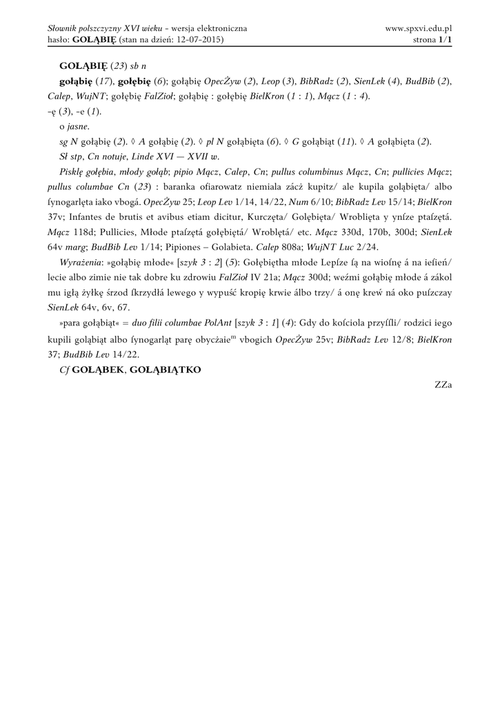 gołąbię OpecŻyw (2) - Słownik polszczyzny XVI wieku