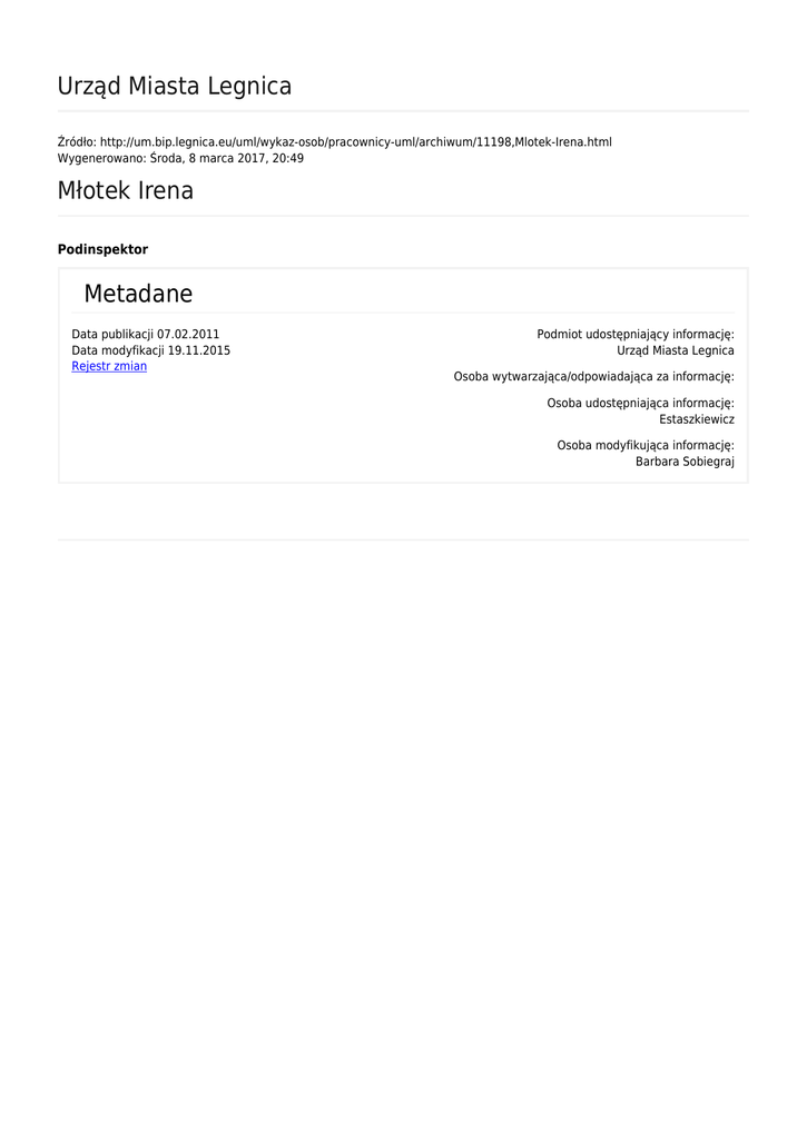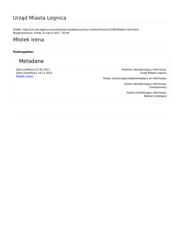 Urząd Miasta Legnicy Młotek Irena Metadane