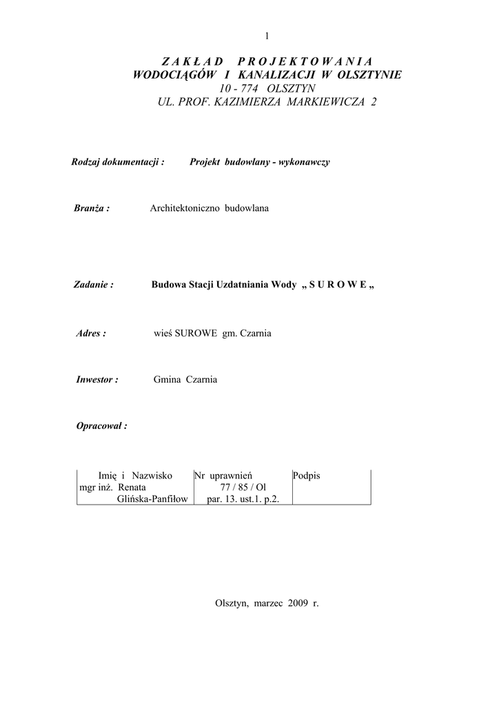 zak ł adprojektowania wodociągów i kanalizacji w