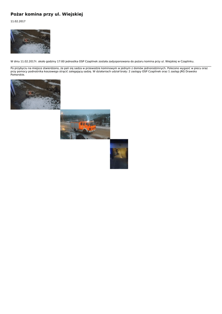 GMINA CZAPLINEK - Pożar komina przy ul. Wiejskiej