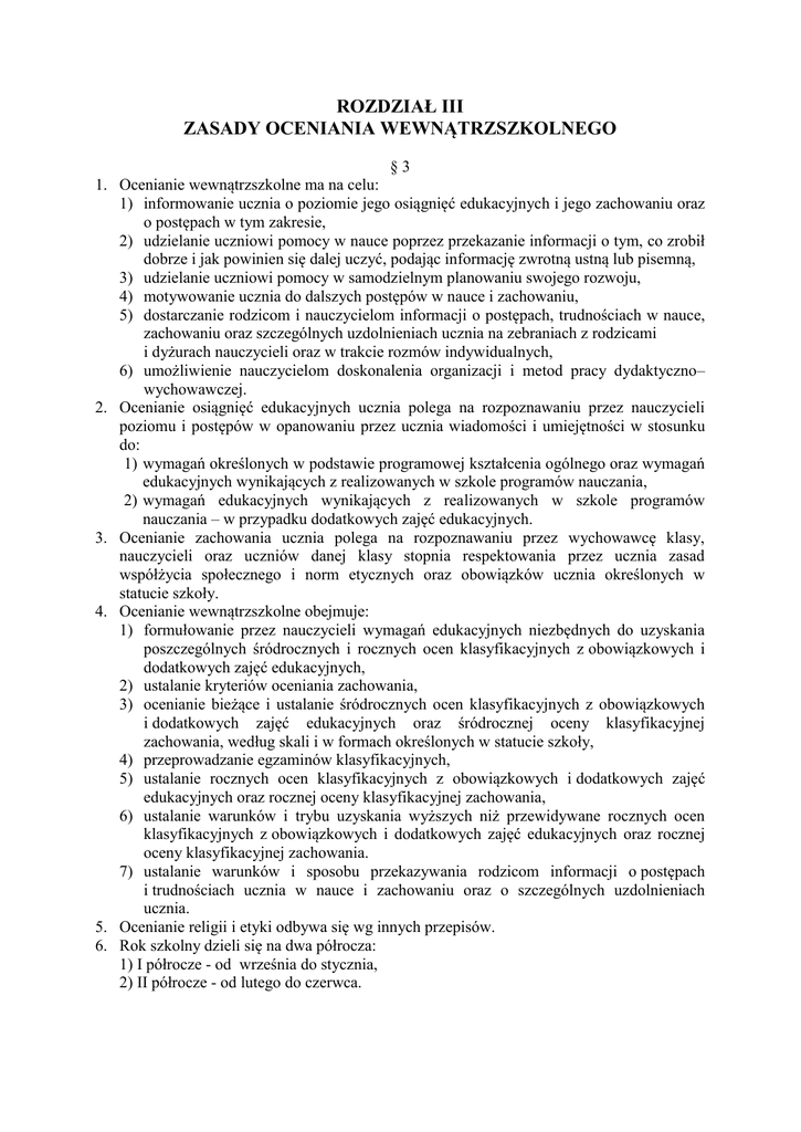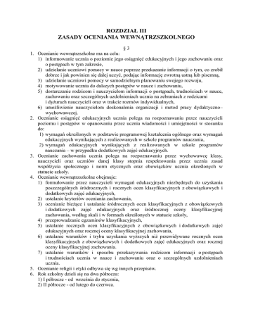 ROZDZIAŁ III ZASADY OCENIANIA WEWNĄTRZSZKOLNEGO
