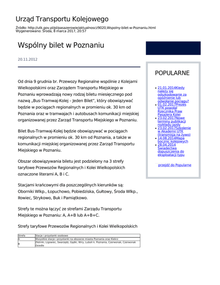 Wspólny bilet w Poznaniu - Urząd Transportu Kolejowego