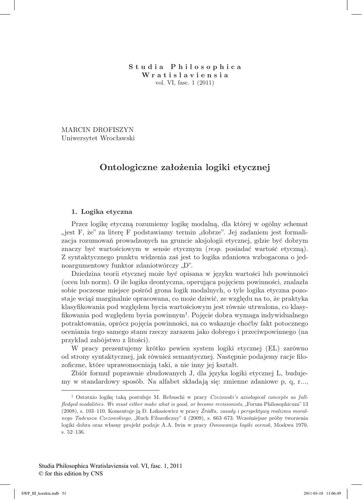 Studia Philosophica Wratislaviensia vol. VI, fasc. 1, 2011