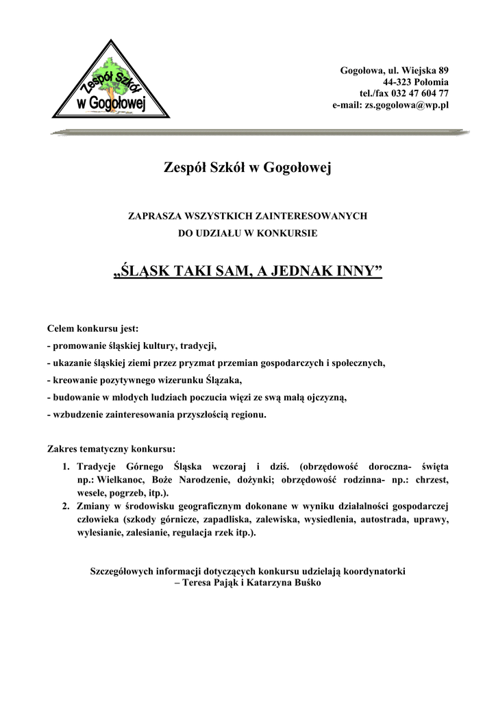 Zespół Szkół w Gogołowej „ŚLĄSK TAKI SAM, A JEDNAK INNY”