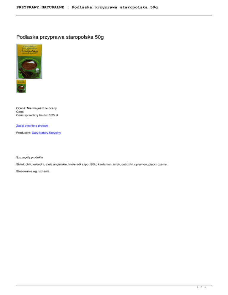 PRZYPRAWY NATURALNE : Podlaska przyprawa staropolska 50g