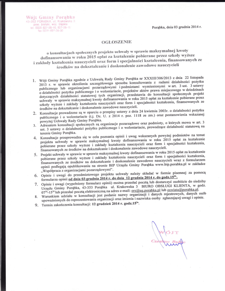 e-mail: [email protected]'p1 lub oswiata@'porabka'pl'