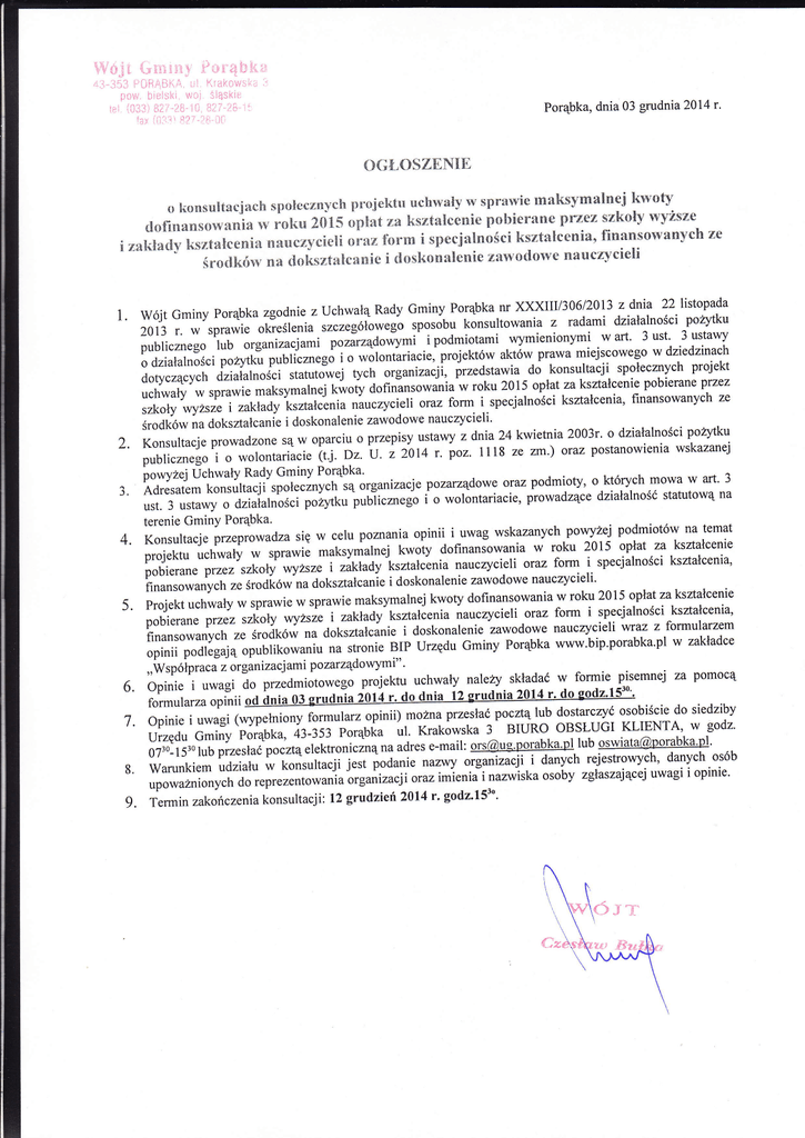 Termin zakottczęniaionsultacji: 12 grudzień 2014r'
