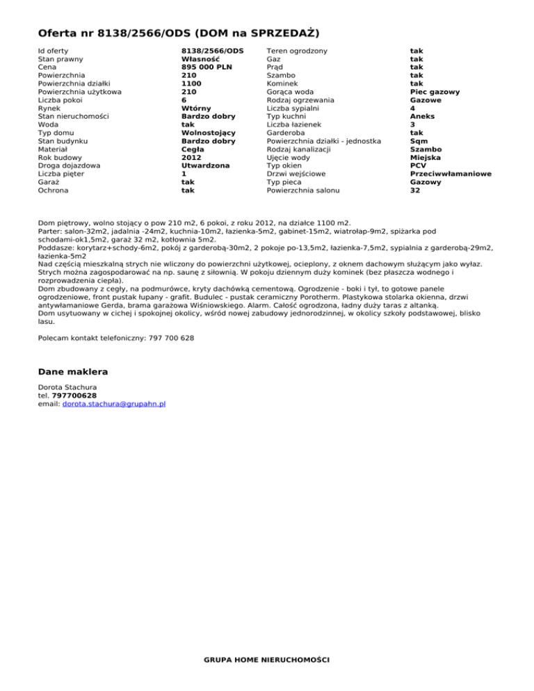 Oferta nr 8138/2566/ODS (DOM na SPRZEDAŻ)