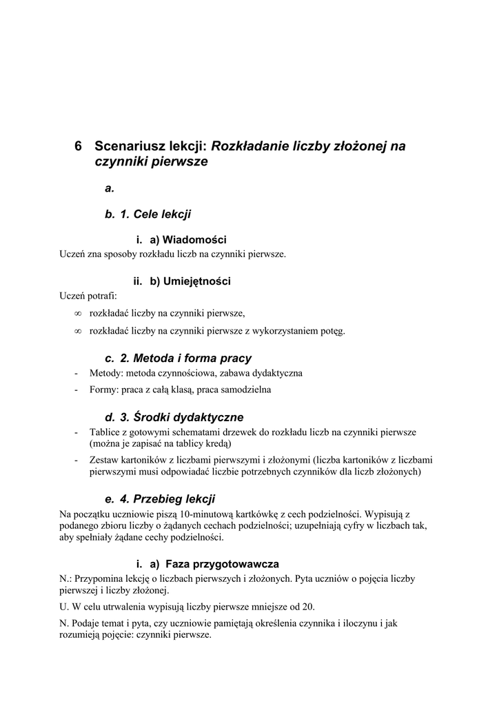 6 Scenariusz lekcji: Rozkładanie liczby złożonej na