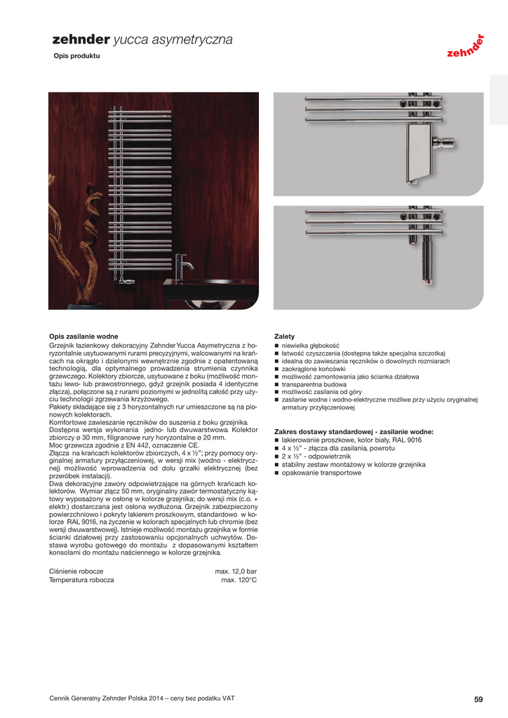Grzejnik Yucca Asymetryczna - cennik i katalog techniczny