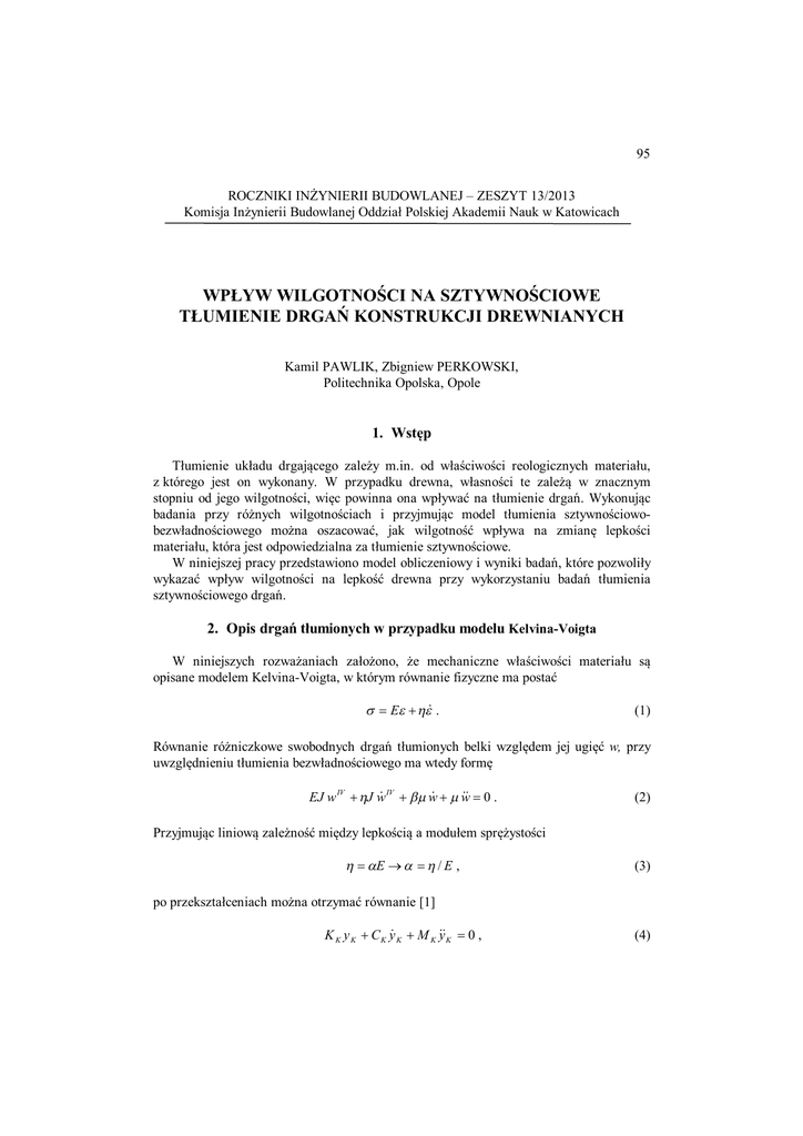 wpływ wilgotności na sztywnościowe tłumienie drgań konstrukcji