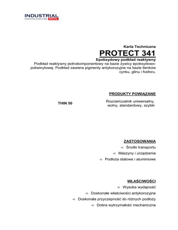 Karta Techniczna PROTECT 341 Epoksydowy podkład reaktywny Podkład reaktywny jednokomponentowy na bazie żywicy epoksydowopoliwinylowej. Podkład zawiera pigmenty antykorozyjne na bazie tlenków cynku, glinu i fosforu. PRODUKTY POWIĄZANE THIN 50 Rozcieńczalnik uniwersalny, wolny, standardowy, szybki ZASTOSOWANIA • Środki transportu • Maszyny i urządzenia • Podłoża stalowe i aluminiowe WŁAŚCIWOŚCI • Wysoka wydajność • Doskonałe właściwości antykorozyjne • Doskonała przyczepność do różnych podłoży • Dobra wytrzymałość mechaniczna PROTECT 341 Karta Techniczna 16.07.2015 PODŁOŻA Oczyścić do stopnia czystości Sa 21/2 (obróbka strumieniowa) lub St3 (czyszczenie ręczne lub z wykorzystaniem narzędzia z napędem mechanicznym) wg PN-ISO 12944-4; powierzchnia po obróbce powinna być wolna od oleju, smaru, pyłu, luźno związanej z podłożem starej powłoki malarskiej, zgorzeliny walcowniczej, rdzy i obcych zanieczyszczeń; powierzchnia powinna wykazywać połysk pochodzący od metalowego podłoża. Stal Stal ocynkowana, aluminium W celu uzyskania chropowatości podłoża zastosować delikatną obróbkę strumieniowo-ścierną stosując kuliste materiały niemetaliczne lub szlifować papierem ściernym P240-P320 a następnie odtłuścić. PROPORCJE MIESZANIA PROTECT 341 THIN 50* / THIN 50 SZYBKI* Objętościowo Wagowo Objętościowo Wagowo 100 100 100 100 30% 22 60% 44 *- patrz WARUNKI APLIKACJI (str.3) LEPKOŚĆ: 44-48 s DIN 4/20°C 22-25 s APLIKACJA Dysza Natrysk pneumatyczny UWAGA: uwzględnić wskazówki producenta sprzętu Natrysk hydrodynamiczny z osłoną powietrza. Zaleca się THIN 50 STANDARD. 1.3 ÷ 1.5 mm 0.28 ÷ 0.33 mm (0.011” ÷ 0.013 ”) Ciśnienie 2 ÷ 4 bar 15 ÷ 20 cm 100 ÷ 120 bar Osłona powietrza 2 bary Liczba warstw 10 ÷ 15 cm 2–3 Grubość pojedynczej suchej warstwy. Wydajność mieszanki gotowej do użycia dla grubości suchej powłoki w podanym zakresie Odległość 20 ÷ 25 µm ok. 4.0 m2/l przy 50 µm PROTECT 341 + THIN 50 Wydajność praktyczna zależy od kształtu podłoża, jego chropowatości, parametrów aplikacji. Czas odparowania między warstwami 5 ÷10 min CZAS SCHNIĘCIA 10min/20°C 2/4 PROTECT 341 Karta Techniczna 16.07.2015 DANE TECHNICZNE Zawartość części stałych wagowo Zawartość części stałych objętościowo Gęstość PROTECT 341 ≈ 51 % ≈ 32 % ≈ 1.22 g/cm3 PROTECT 341 + THIN 50; 100+30% ≈ 42 % ≈ 25 % ≈ 1.13 g/cm3 PROTECT 341 + THIN 50; 100+60% ≈ 36 % ≈ 20 % ≈ 1.08 g/cm3 Wyrób ZAWARTOŚĆ ORGANICZNYCH CZĘŚCI LOTNYCH VOC II/B/c limit* 780 g/l VOC rzeczywiste 695 g/l * Dla mieszaniny gotowej do aplikacji według Dyrektywy UE 2004/42/CE DOBARWIANIE Nie zalecane. POKRYWALNY PRZEZ Emalie akrylowe, farby bazowe, podkłady akrylowe, środki ochrony karoserii. Szpachlówek poliestrowych, podkładów epoksydowych oraz lakierów akrylowych nie nakładać bezpośrednio na Protect 341. Nakładanie farby nawierzchniowej możliwe po upływie 20 min/20°C przy grubo ści 50µm. Maksymalny czas nakładania następnej powłoki wynosi 48 godz. WARUNKI APLIKACJI Malowana powierzchnia musi być sucha. Temperatura farby, malowanej powierzchni jak i otoczenia powinna mieścić się w zakresie od +15°C do +25°C, a wilgotno ść względna nie powinna przekraczać 80%. Temperatura malowanej powierzchni powinna być wyższa od temperatury punktu rosy o min. 3°C. Dobór rozcieńczalnika zależy od temperatury podczas aplikacji oraz stosowanego rozcieńczenia. Thin 50 STANDARDOWY zaleca się stosować do rozcieńczenia 30% oraz do aplikacji w wyższych temperaturach (23-25°C). Thin 50 SZYBKI zaleca się stosować do rozcieńczenia 60% oraz aplikacji w niskich temperaturach (15-18ºC). KOLOR Beżowy. CZYSZCZENIE SPRZĘTU Rozpuszczalnik do wyrobów nitrocelulozowych. WARUNKI PRZECHOWYWANIA Przechowywać w chłodnych i suchych pomieszczeniach z dala od źródeł ognia i ciepła. Unikać naświetlania promieniami słonecznymi. TERMINY PRZYDATNOŚCI * PROTECT 341 12 miesięcy/20°C THIN 50 24 miesiące/20°C * W oryginalnie zamkniętym opakowaniu 3/4 PROTECT 341 Karta Techniczna 16.07.2015 BEZPIECZEŃSTWO Patrz Karta Charakterystyki INNE INFORMACJE Efektywność naszych systemów jest wynikiem badań laboratoryjnych oraz wieloletniego doświadczenia. Dane zawarte w niniejszym materiale są zgodne z aktualnym stanem wiedzy o naszych produktach i możliwościach ich stosowania. Gwarantujemy wysoką jakość pod warunkiem, że są spełnione nasze instrukcje i że praca jest wykonana zgodnie z zasadami dobrego rzemiosła. Konieczne jest wykonanie próbnego zastosowania produktu ze względu na potencjalnie różne zachowanie się wyrobu z różnymi materiałami. Nie ponosimy odpowiedzialności jeżeli na końcowy rezultat pracy miały wpływ czynniki znajdujące się poza naszą kontrolą. 4/4