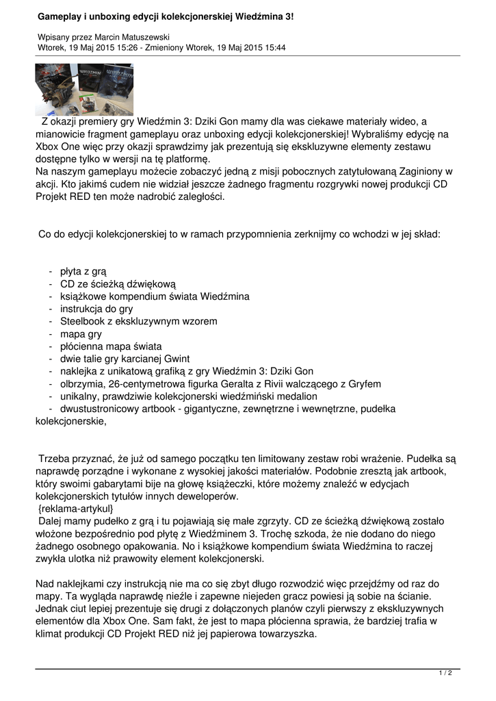 mianowicie fragment gameplayu oraz unboxing edycji kolekcjonerskiej! Wybraliśmy edycję na