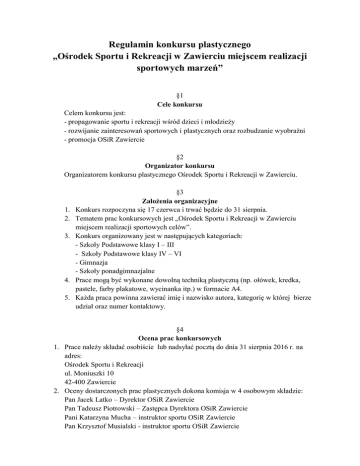 Regulamin konkursu plastycznego „Ośrodek Sportu i