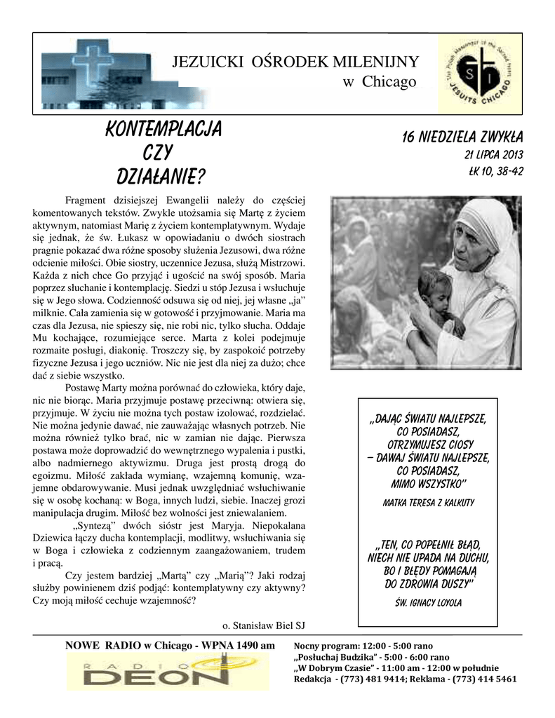 Niedziela 21 lipca 2013 - Polscy Jezuici w Chicago