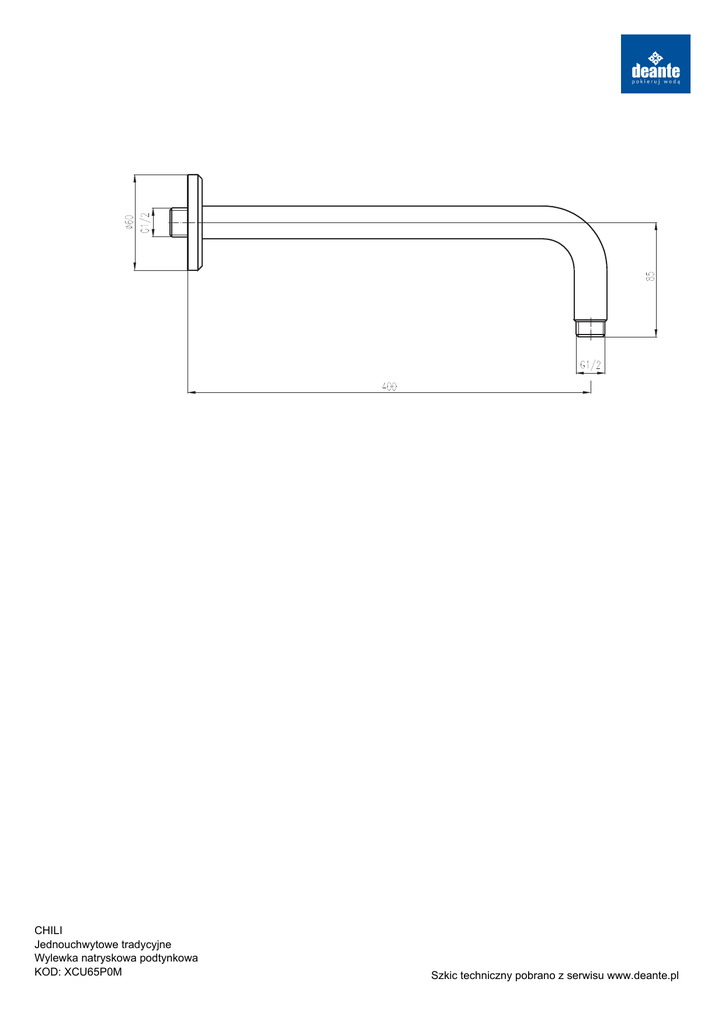 CHILI Jednouchwytowe tradycyjne Wylewka natryskowa podtynkowa KOD: XCU65P0M Szkic techniczny pobrano z serwisu www.deante.pl